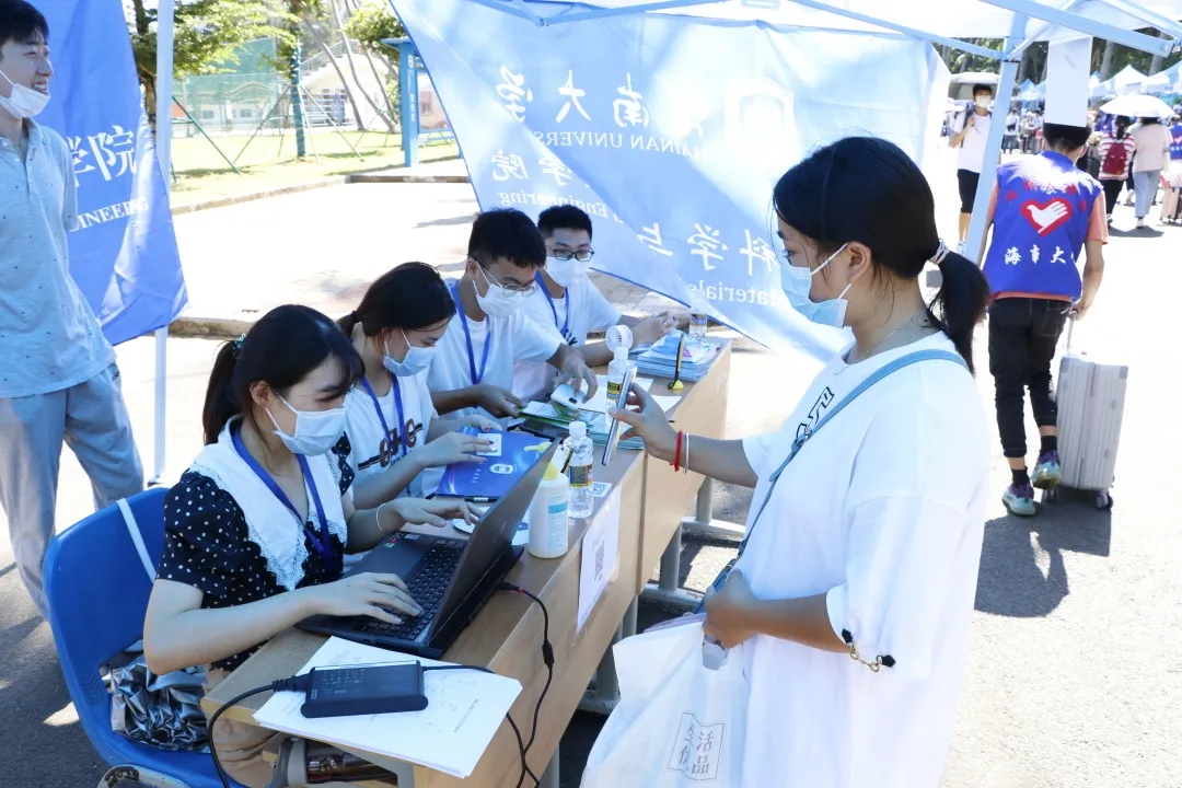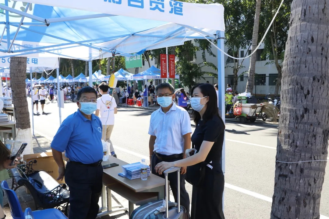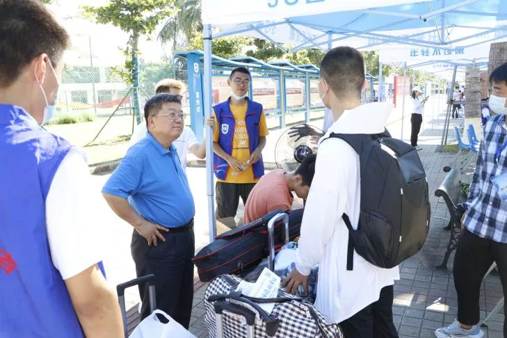 为贯彻落实国家和海大疫情防控要求,稳慎做好海大开学工作,切实维护广大新生身体健康和生命安全,符宣国书记、骆清铭校长带队来到迎新大本营慰问迎新工作人员,询问迎新的具体情况,肯定了我院对新生报到数据的精准掌握。