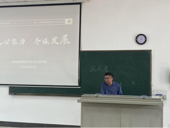 2022年3月15日下午,yL23411永利集团在4教208召开新学期全体职工大会,会议由胡先文书记主持,全体职工参加会议。
