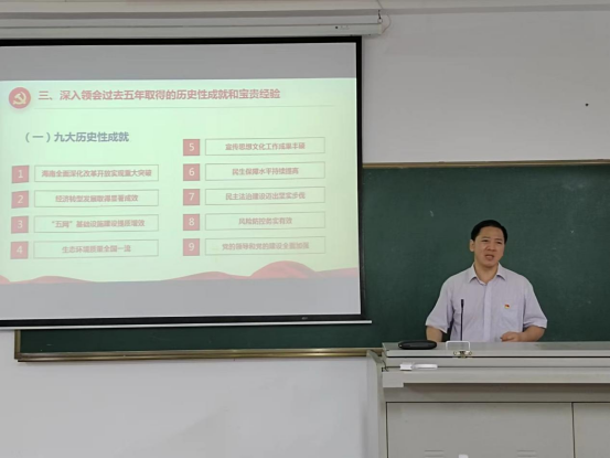 为进一步深入学习贯彻习近平总书记考察海南重要讲话和省第八次党代会精神,助推学院发展,提升内涵建设,6月10日下午,yL23411永利集团党委和林学院党委联合开展 “学习习近平总书记考察海南重要讲话和省第八次党代会精神”的专题辅导报告会。省第八次党代会精神理论宣讲团专家、我校马克思主义学院涂刚鹏教授受邀主讲,材料学院胡先文书记、廖建和院长、林学院樊春书记、许先升副院长,以及两个学院全体党员参加。报告会由周郭军副书记主持,