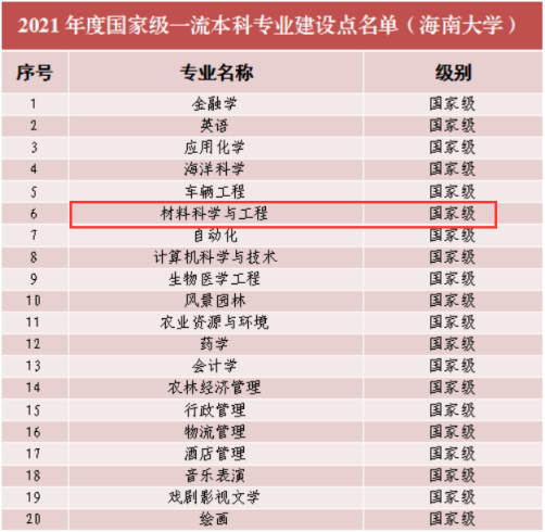 根据《教育部办公厅关于公布2021年度国家级和省级一流本科专业建设点名单的通知》(教高厅函〔2022〕14号),我院材料科学与工程专业获批2021年度国家级一流本科专业建设点。