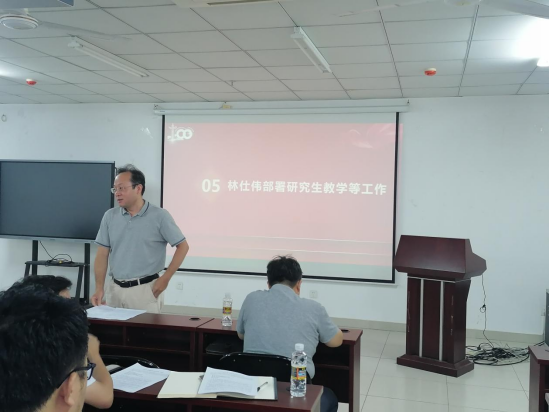 林仕伟副院长对本学期研究生招生培养等工作进行介绍,要求专业教师充分利用好教学平台,完善学生培养计划,充分利用研究生教学实训基地,做好联合培养等工作。