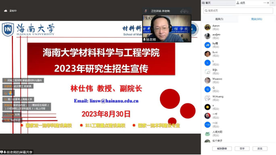 会上,林仕伟教授详细介绍了我院的基本情况以及相关学科研究生教育的优势与特色,并从学位点、师资、培养模式、奖助体系、招生政策等方面着重介绍了研究生教育概况。并鼓励广大考研学生报考我院学习深造。答疑环节中,与会老师就同学们最关切的问题进行解答,现场互动积极、气氛热烈。