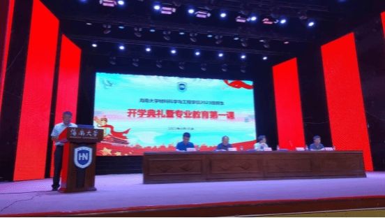 邓意达院长介绍了学院新生的基本情况、什么是材料、学院的基本情况,并对同学们提出殷切希望。他指出,学院办学历史悠久、办学层次齐全、师资力量雄厚和改革成果突出等,重点讲述了材料专业的重要性和发展前景。寄语新同学们:一是要坚定理想信念,践行“海大精神”。同学们要发扬“丹心耀南疆”的爱国奉献精神、“草庐创伟业、荒滩筑新城”的艰苦奋斗精神和“敢闯敢试、敢为人先”的改革创新精神。作为新时代青年,要树立正确的历史观、民族观、国家观,自觉把个人的命运同祖国的命运、党的命运、社会主义的命运紧密联系起来,将个人的“小我”融入祖国的“大我”、人民的“大我”之中,争做勇立时代潮头的奋进者、开拓者和奉献者。二是了解材料,投身自贸港建设。材料是人类生存和发展的基础,是人类文明的重要组成部分,为人类提供建造、制造、生产和发展。他希望同学们聚焦材料学科前沿动态,加入攻坚克难“卡脖子”难题,积极投身自贸港建设。三是刻苦学习,把稳青春航向之舵。他希望同学们要保持高度的学习热情,弘扬优良学风,培养奋勇争先的进取精神,把奋斗精神融入学习、融入日常、融入各类实践活动中,以时不我待、只争朝夕的精神更好担负起时代赋予的使命,在波澜壮阔的时代画卷中书写自己奋斗的人生。