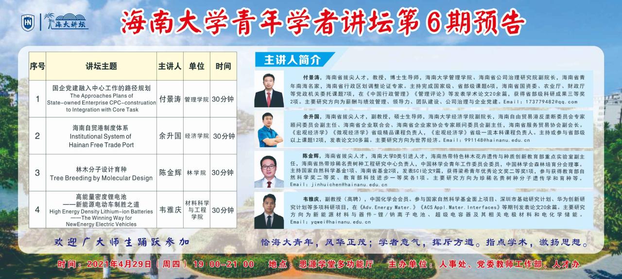 永利yl23411集团青年学者讲坛第六期预告