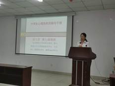 周郭军老师对吴九君副教授的到来表示热烈的欢迎。她指出,希望大家通过此次的心理健康培训讲座继续重视学生的心理健康教育。当前材料学院已经开展了心理排查工作,希望师生们可以及时发现问题,及时解决,同时对有心理异常的同学多一些关心,寄予爱和温暖。
