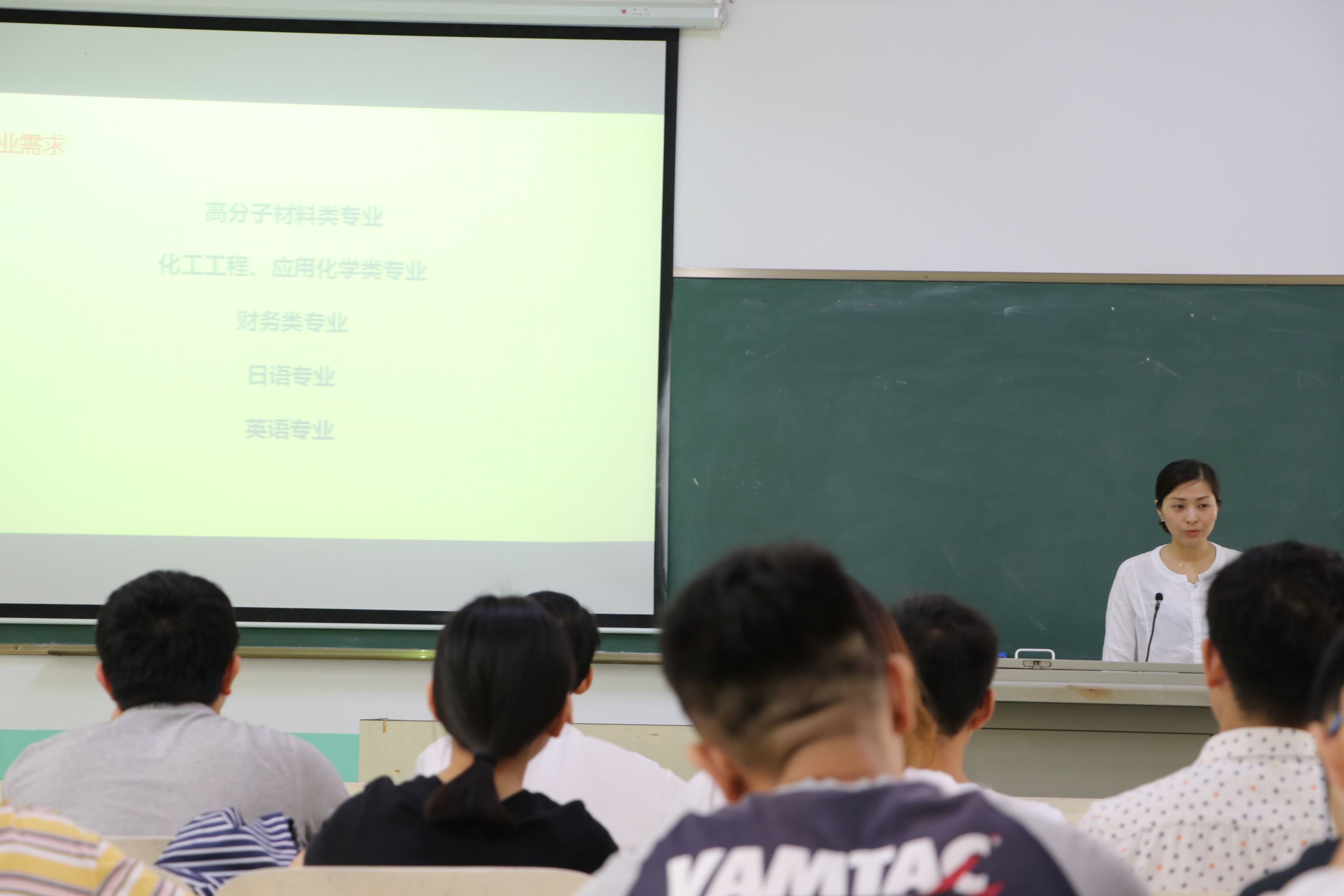 首先,金昌盛科技有限公司负责人对公司进行了简单的介绍,金昌盛科技有限公司业务范围包括:高分子材料,有机合成材料以及橡胶材料的研发,产品销往包括东南亚、欧美在内的全球20多个国家和地区。紧接着负责人为大家详细讲述了应聘的须知,其应聘的流程为:线上注册填写简历、应聘岗位、资格审查、统一初选考试、测试面试、人员公示和签约录用等。最后介绍了公司的员工福利等。
