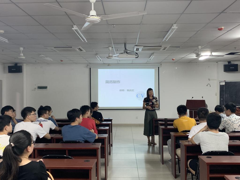 培训会开始后,韩庆红老师从专业的角度及多年的经验出发,从HR筛选简历的过程、简历应突出的重点和简历设计等多方面进行了讲解,他建议同学们要全面看待用人单位的招聘要求,剖析自己的优势与不足,在简历书写中要扬长避短,量化并优化个人经历,充分凸显自身特长。同时他还对面试时应答技巧进行了讲解,使同学们进一步端正了就业态度、明确了就业目标、增强了就业信心,对如何面对就业面试等难题也有了更清晰的认识。